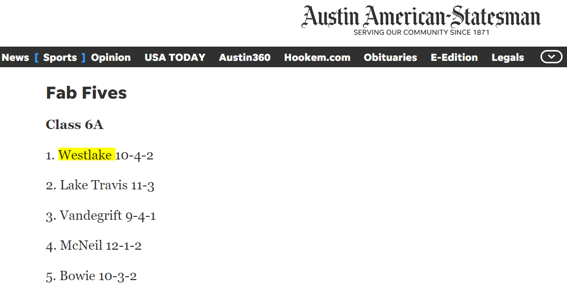 Westlake jumps to top of Statesman’s Fab 5 List following 3-0 defeat over #1 6A state team Lake Travis