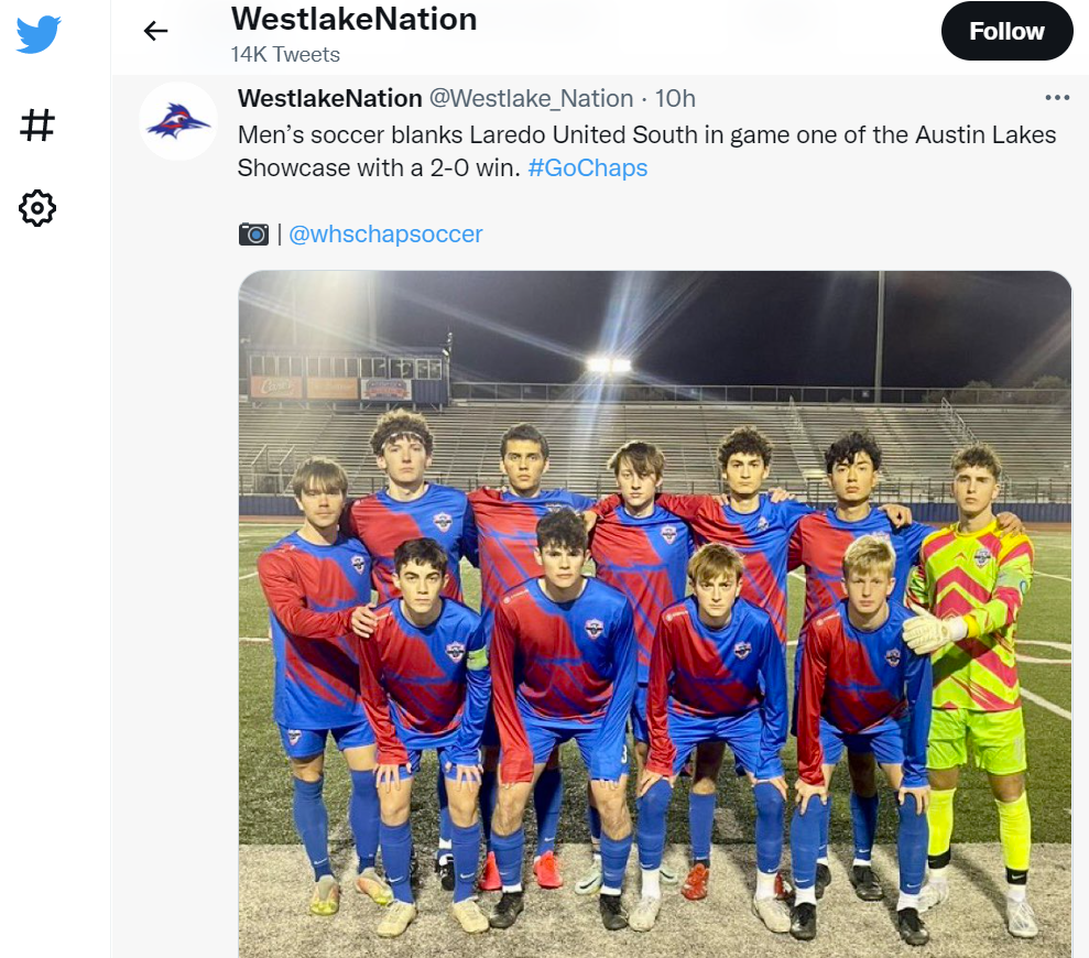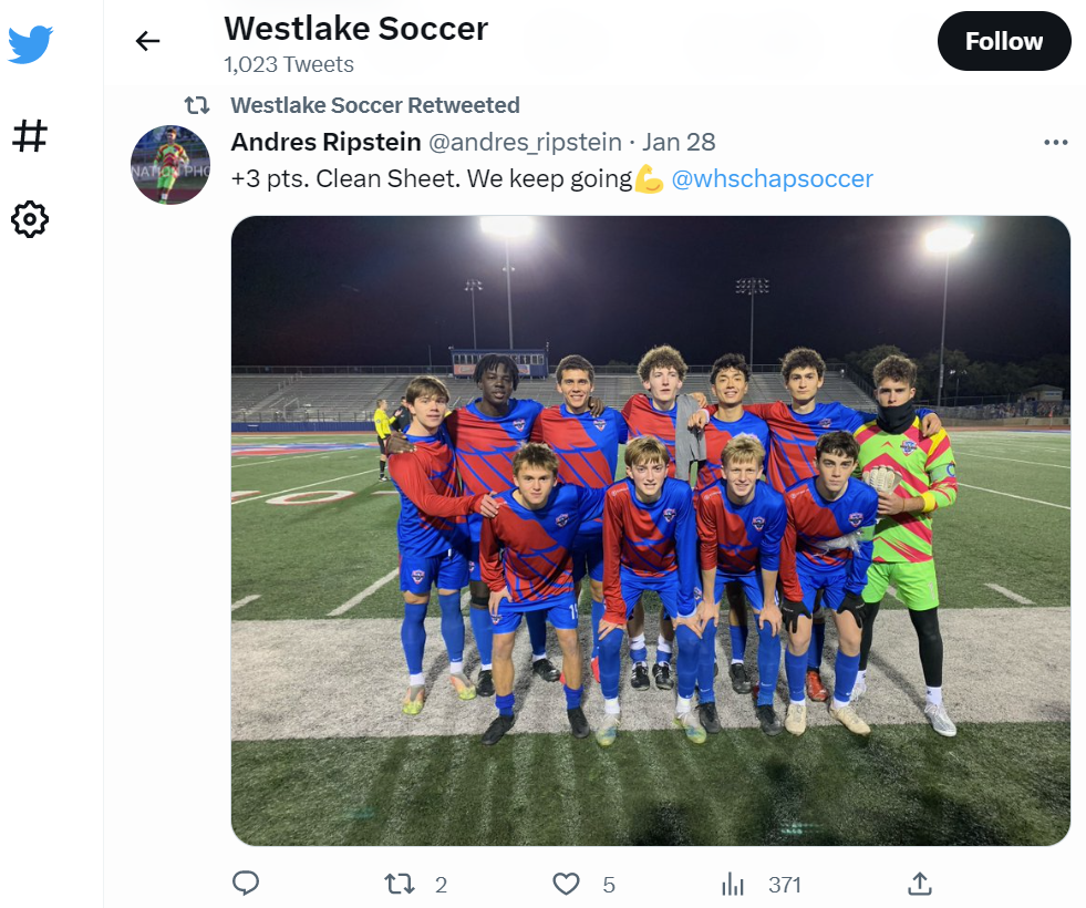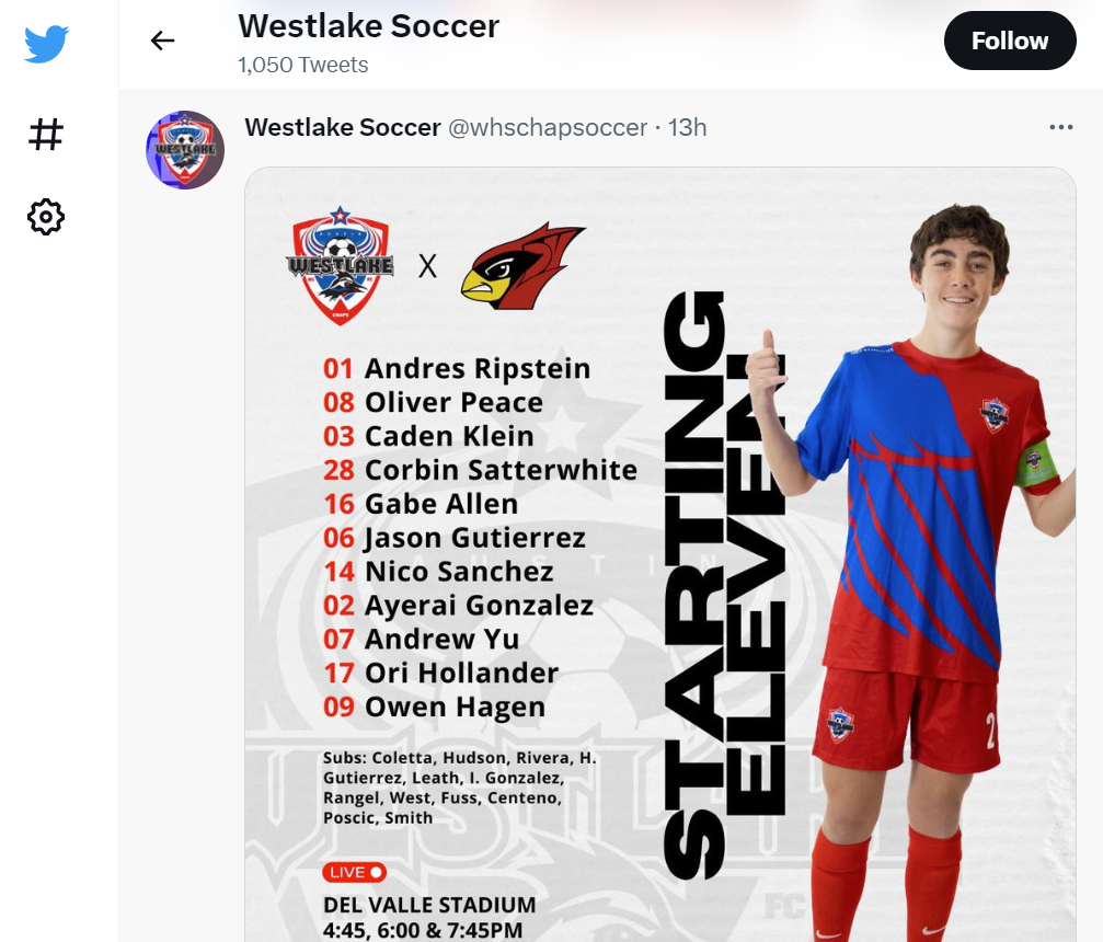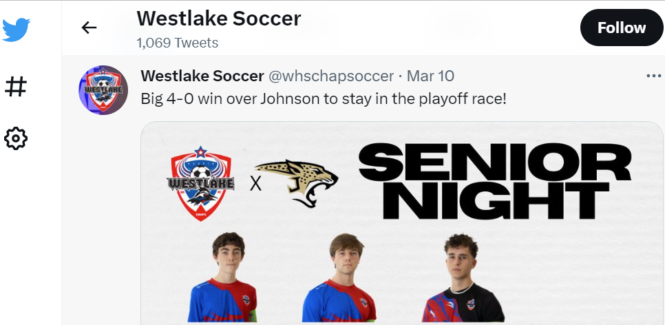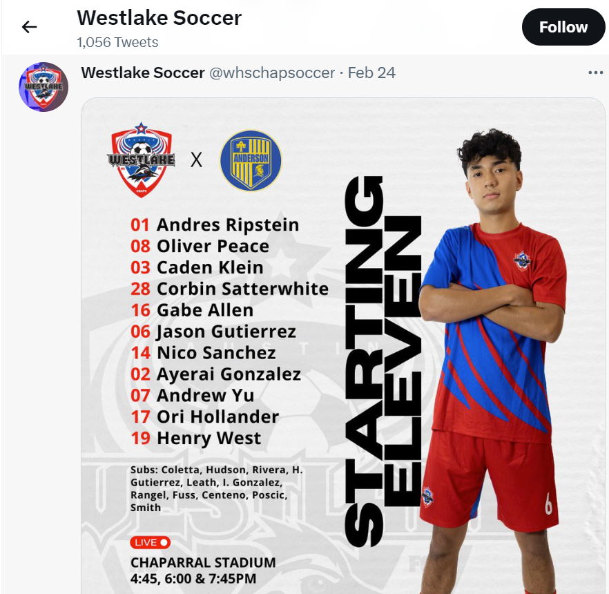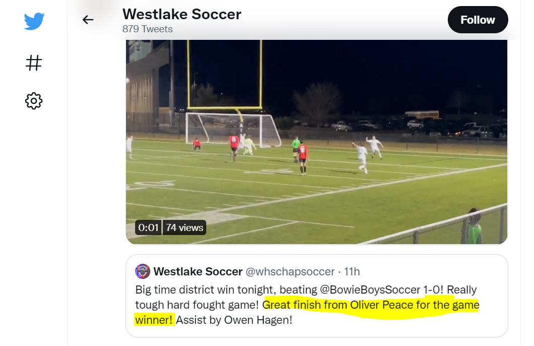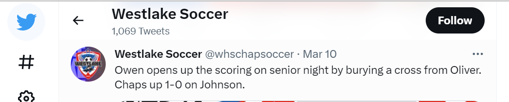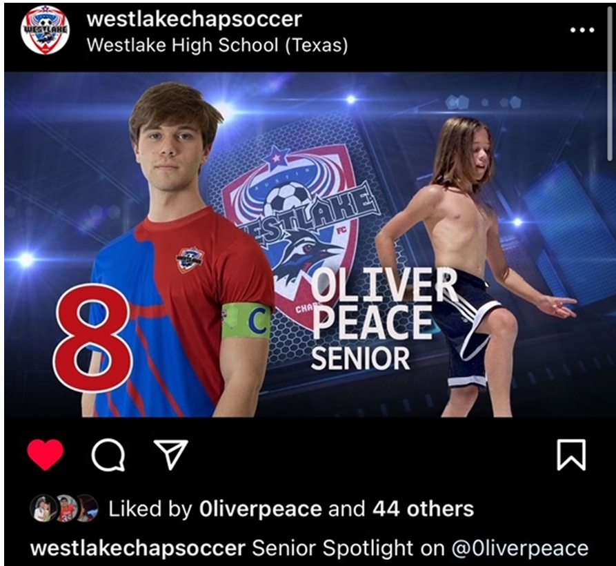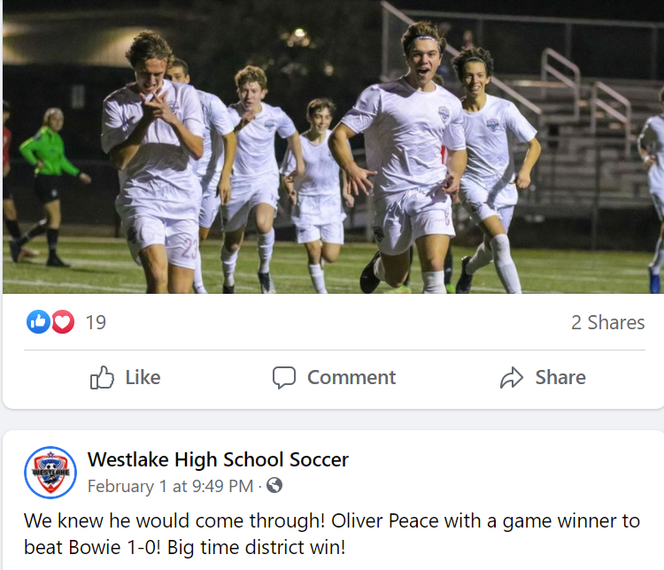 Westlake Men’s Soccer Instagram - Oliver Peace assist v. Bowie