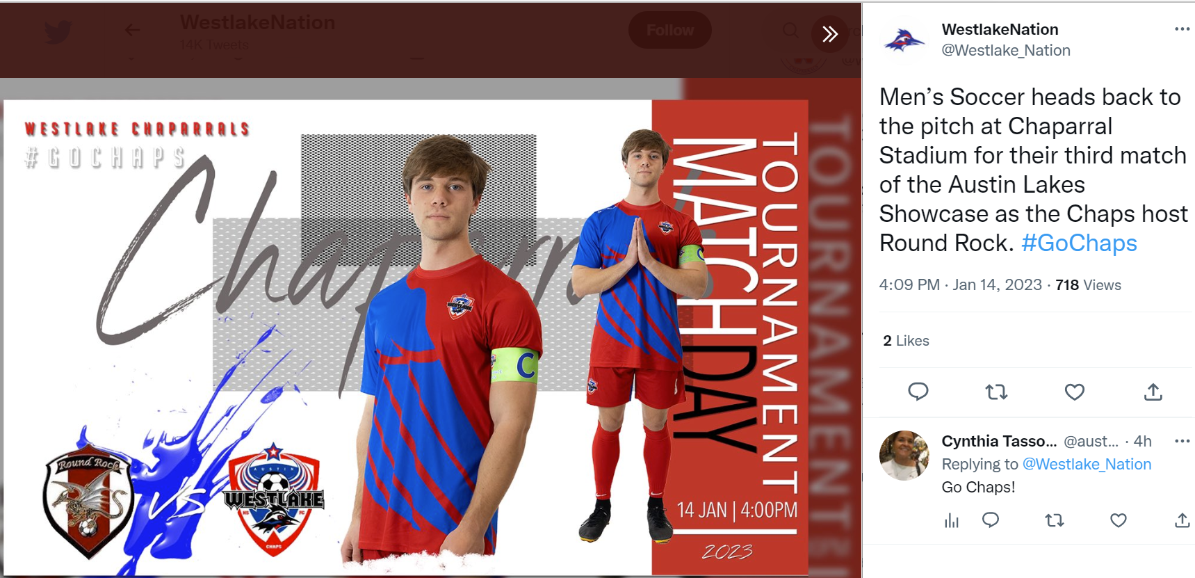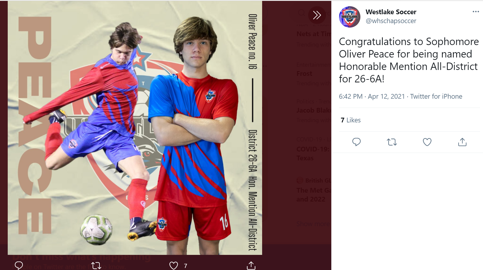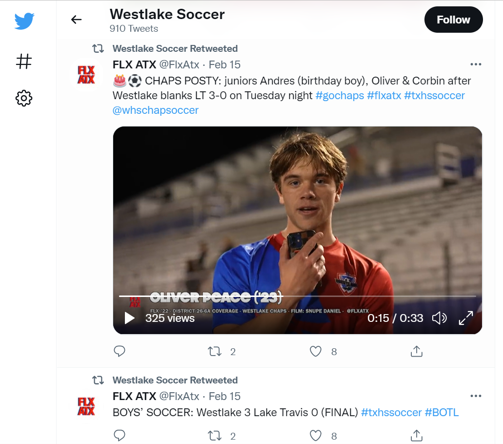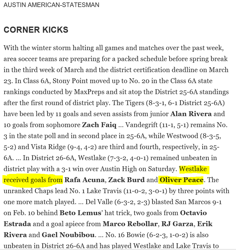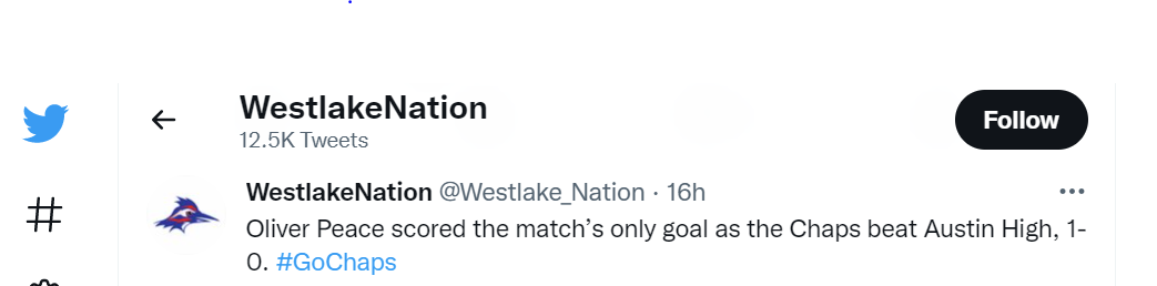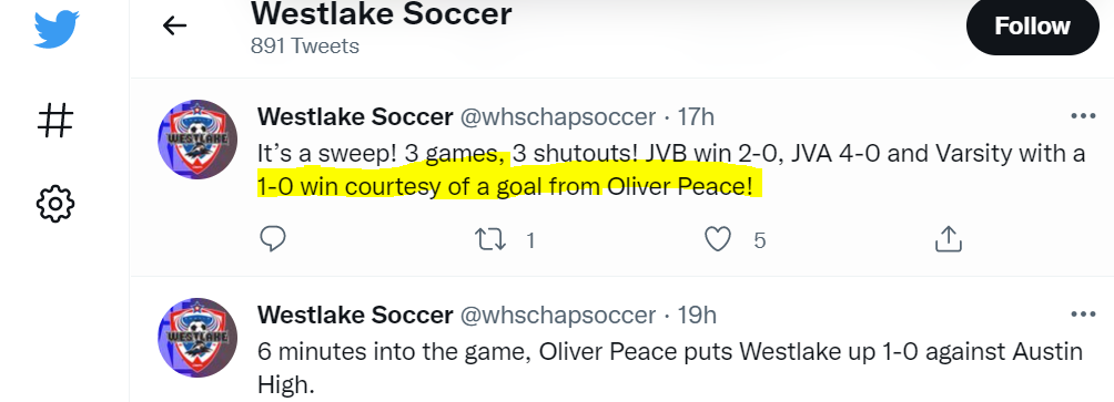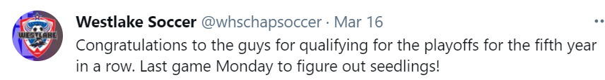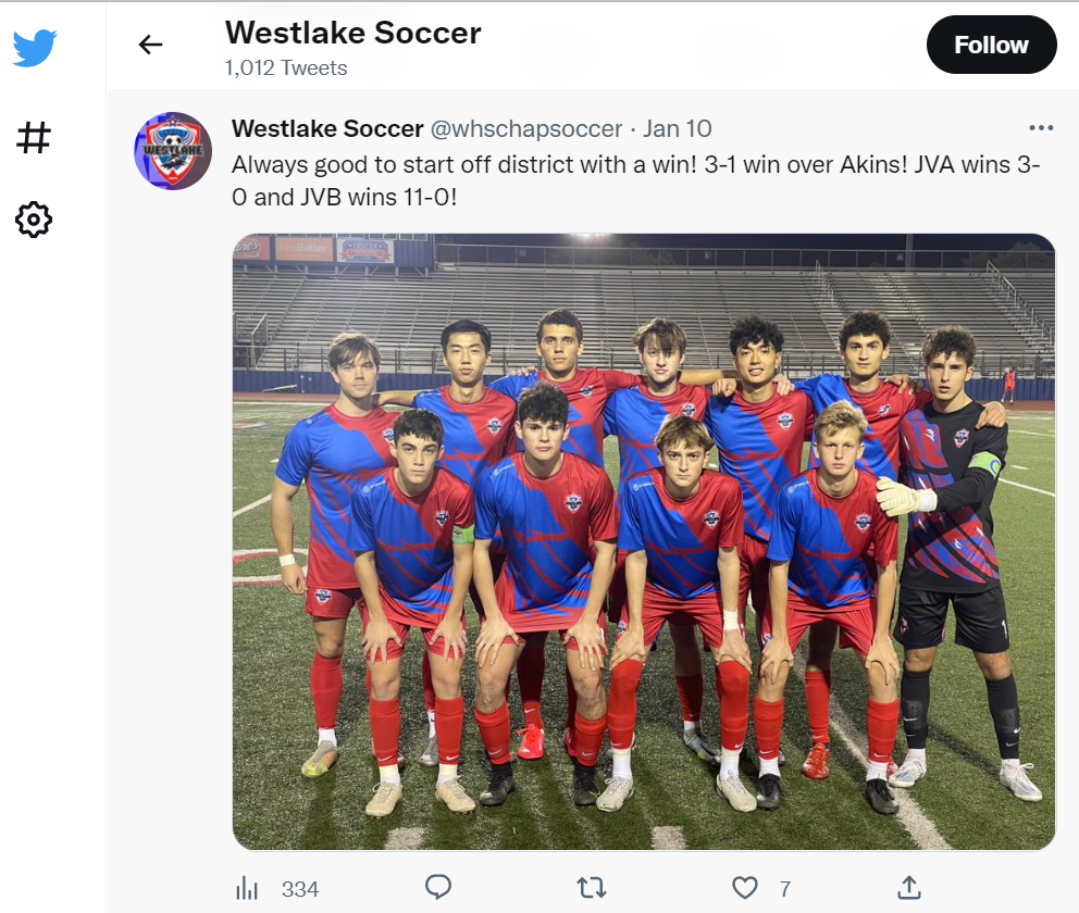 Westlake Men’s Soccer Instagram - Oliver Peace assist v. Bowie