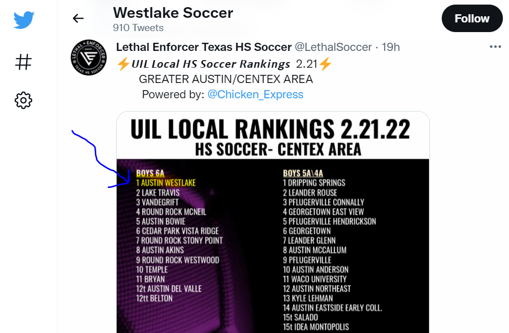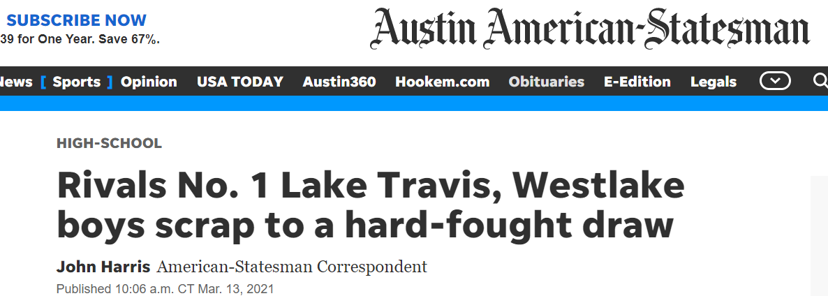 Westlake ties top rival and #1 Texas 6A state ranked Lake Travis.